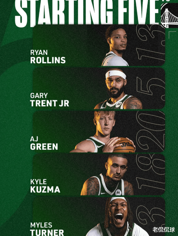首发阵容方面,勇士队这边,科尔排出的最新首发五人组为:斯蒂芬-库里、吉米-巴特勒、乔纳森-库明加、德雷蒙德-格林、昆滕-波斯特;雄鹿队这边,首发阵容则为:莱恩-罗林斯、 小加里-特伦特、AJ-格林、凯尔-库兹马和迈尔斯-特纳。
