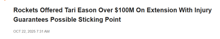 参考锡安的合同条款,伊森虽然获得火箭超过1亿美元的报价,但可能其中对伤病的限制比较严格,双方未能达成共识。伊森毕竟前两个赛季的出勤率不高,出于对自己利益的保障,他可能没法接受这样的合同。