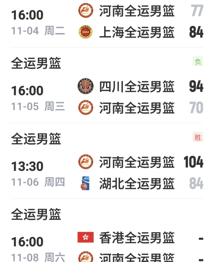 河南全运男篮没有比赛任务,休息一天,8日下午16时对阵香港全运男篮。