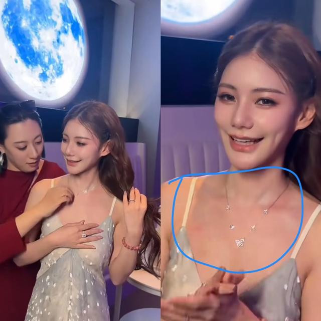 再看汪小菲送的给生日礼物,马筱梅拆开之后在友人的帮助下戴好,是一款今年最流行的国际大牌蝴蝶项链,前段时间女星黄杨钿甜戴的假耳环就是仿制这个品牌的产品。