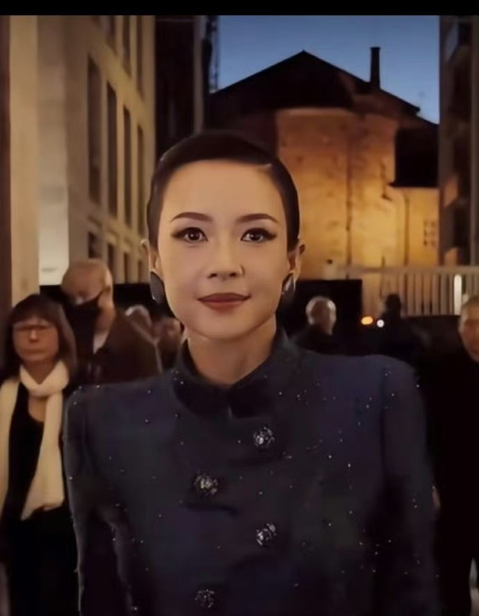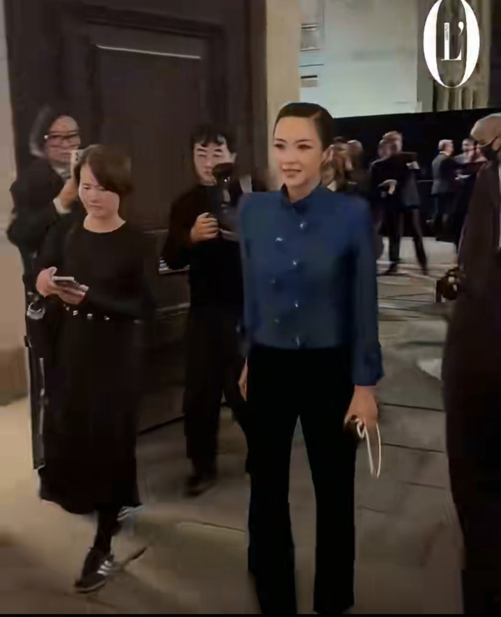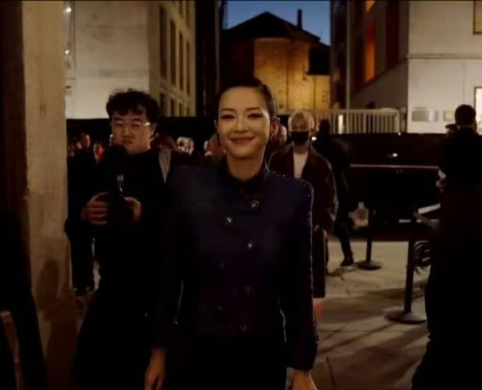 章子怡米兰时装周看秀, 一身穿搭好有气质又白又美, 还很松弛大气