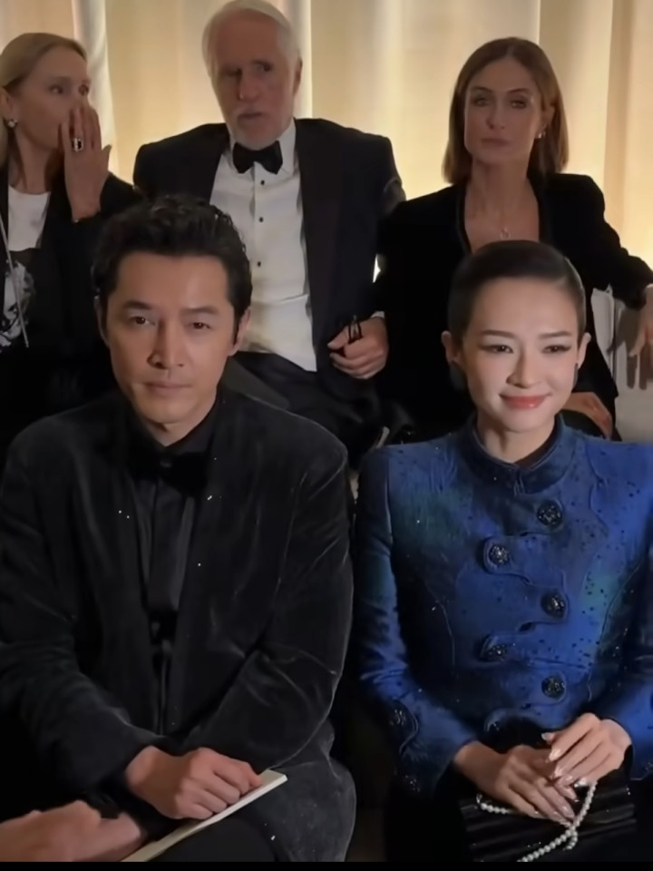 章子怡胡歌同场看秀! 穿新中式展示东方美学, 把欧美明星比下去了