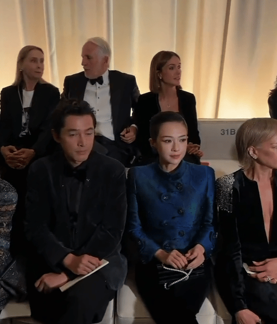 章子怡和胡歌都被安排在第一排,章子怡旁边就是大魔王凯特布兰切特,这个位置不用说,大家也知道含金量有多高。章子怡一亮相就自带高光,和胡歌同框时,俩人站在一起像从画报里走出来似的,一个明艳大气,一个清俊挺拔,太养眼了 。