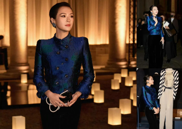 章子怡利落盘发配巴掌小脸,穿新中式礼服,简直是东方美学天花板。