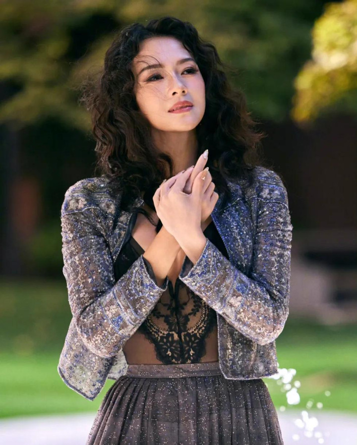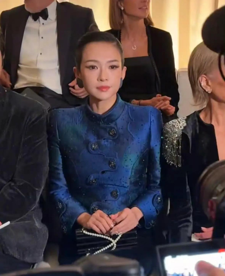 章子怡来看秀,待遇自然不必说。她的首套造型,选择了选择了品牌2025秋冬系列的秀场压轴Look,刺绣外套搭配亮钻点缀星空半裙,将璀璨星河穿上身,超级美。