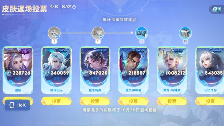 在十月份中旬,王者荣耀还会开启今年的周年庆限定皮肤返场投票活动。